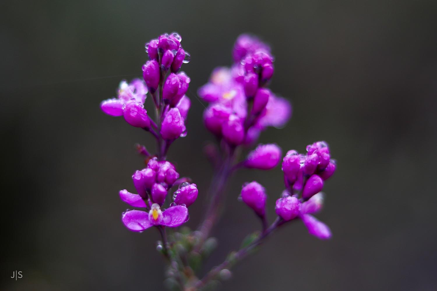 Heath Milkwort - Alpine National Park. Dew covered Heath Milkwort just beginning to bloom.